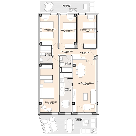 Salón comedor: 24,66 m2
