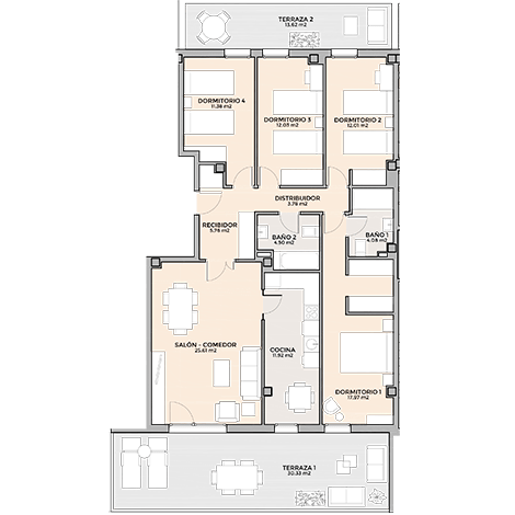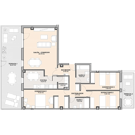 Salón comedor: 30,73 m2