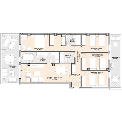Dormitorio 1: 19,76 m2
